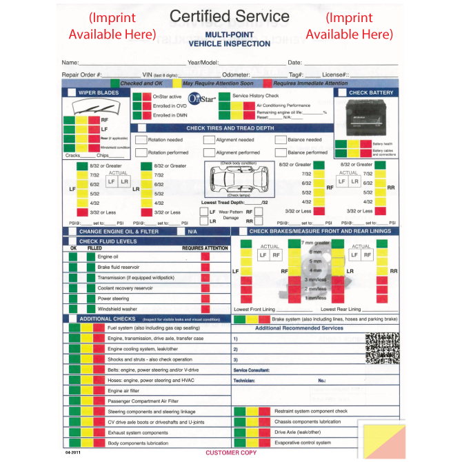 General Motors Multi-point Inspection Form – Customizable With Your Imprint – Pkg Of 500 -#7292imp