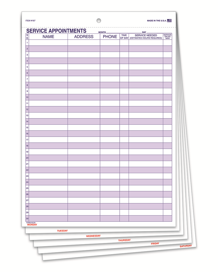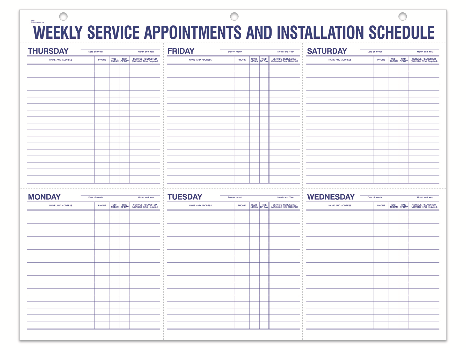 Comments Off on Weekly Service Appt & Inst Schedule – 9927 – 22″ x 17″ 52 Per Pad