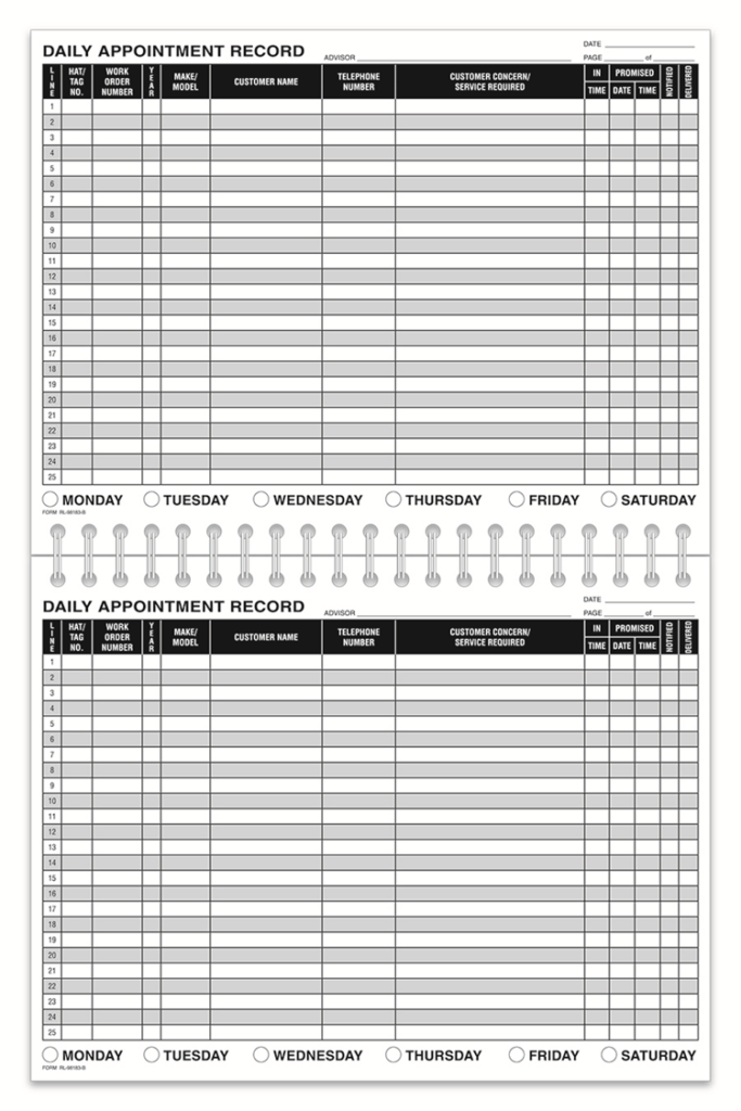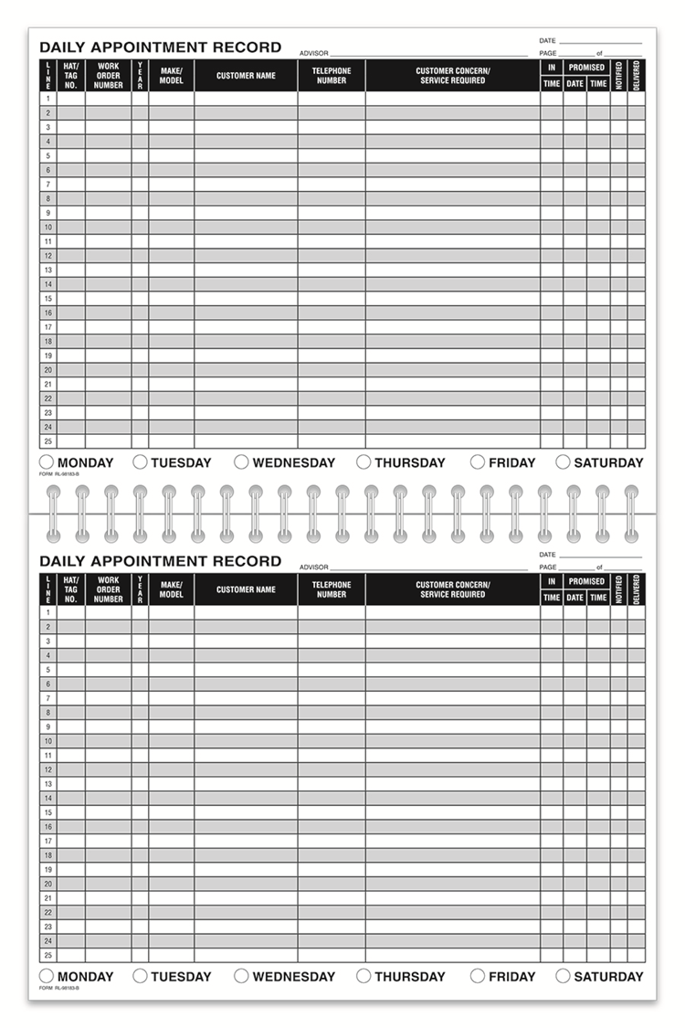 daily appointment record book #169 | AutoDealerSupplies.com is your #1 source for Auto Dealer Supplies