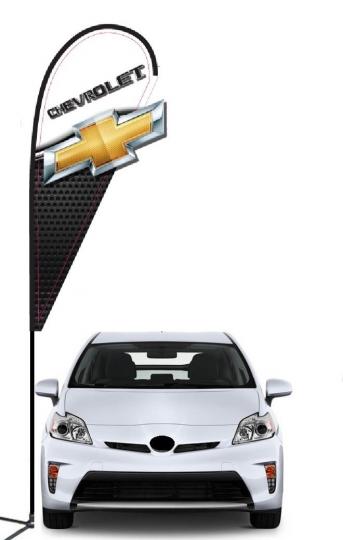 NEW! Double Sided Laser-Cut 3D Flag Kit. The 3D Laser Cut technology creates the illusion of the product jumping out of the flag. This is a double-sided flag so the message on this flag can be read correctly from both sides. Kit comes with 3-D Double Sided Flag, Poles and your choice of base. Flag measures 9.8' x 2.25', Total Kit size is 12'. Great for Dealerships, Restaurants, Events and more! Only Double Sided 3-D Flag on the Market! Mounting options include: 1.) Ground-spike for use in grass or dirt 2.) Wheel-base slides under a car tire and uses the vehicle's weight to hold the flag 3.) Cross-base with water bag to use the flag on concrete or other hard surface. Use the drop-down menu above to select your mounting option