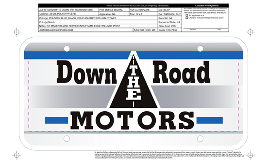 2500 Custom License Plate Inserts For Down The Road Motors - 35mil