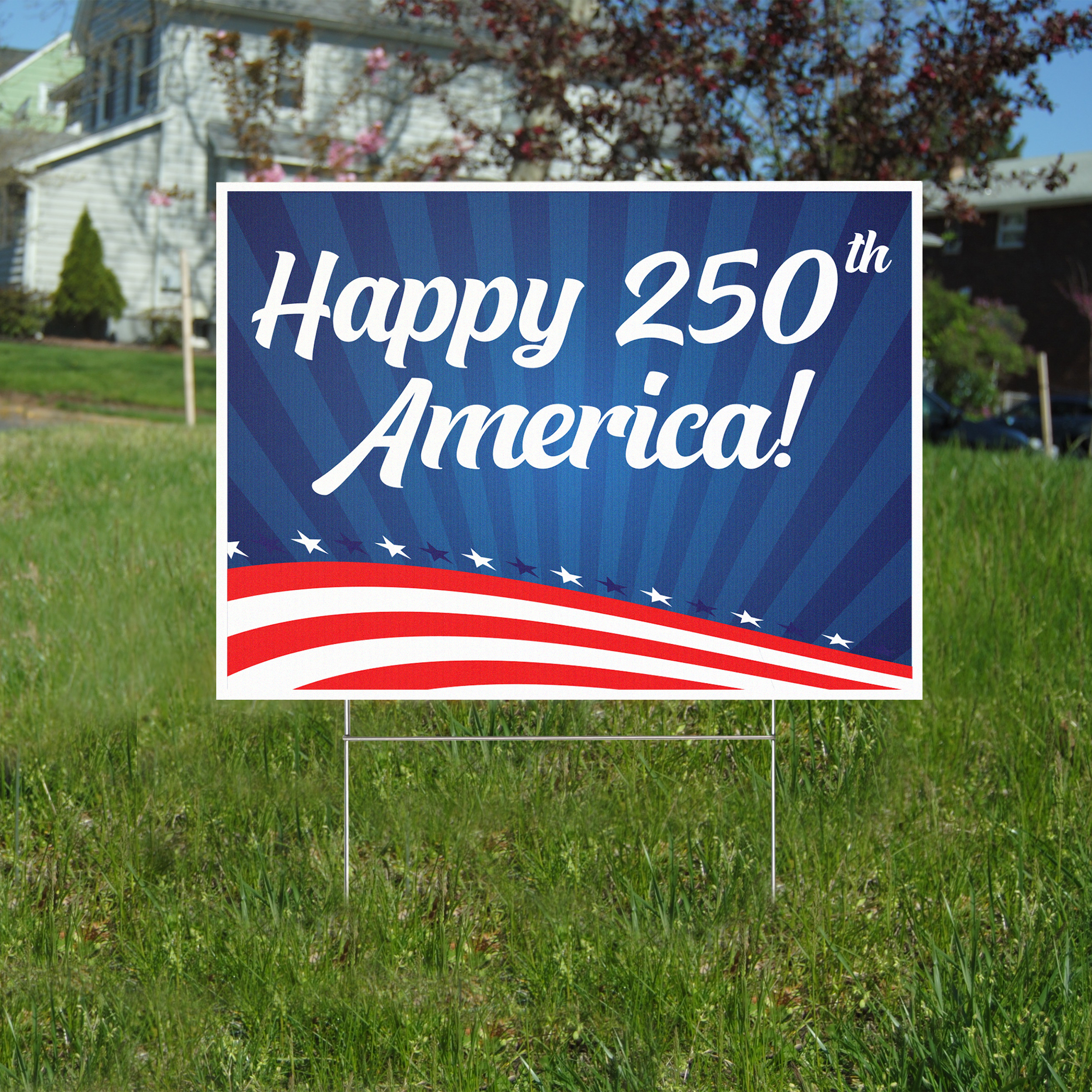 Americas 250th Celebration Curb Signs With Step Stake Wire Frame