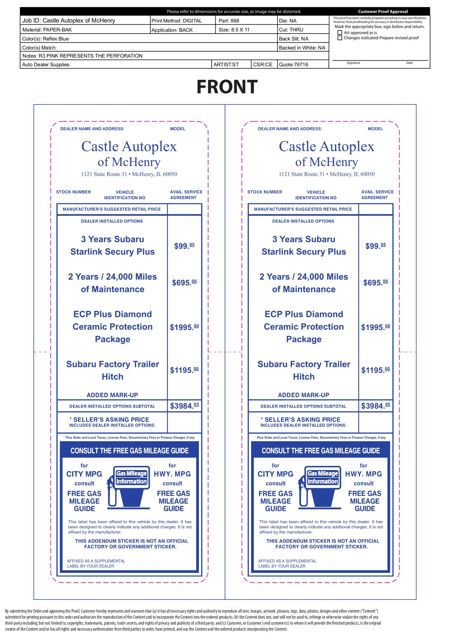 Castle Autoplex 2-up Addendum 868pcd With Starlink, Maintenance, Ecp, Hitch
