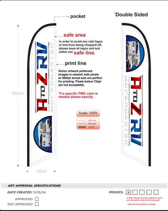 Custom A to Z Double-Sided Feather Flag Nsfb-style This Feather Flag, also called a Feather Banner, has a vibrant colored background with bold graphics and text. Great for the front of your business or out by the road, this flag will flutter & flap with a slight breeze. This flag measures approximately 2.5 feet wide by 11.5 feet tall. When installed on the flagpole it is nearly 15 feet tall. Constructed from UV treated, lightweight and affordable polyester. The printing on our flags is dyed-thru so the message is visible from both sides. It has a sewn sleeve that easily slips over the specially designed flagpole that is sold separately. To use this flag you will also need to purchase the flag hardware. Normal ground installation requires a flagpole and a ground-spike. These can be added to your order by clicking the 2 check-boxes above. You can also view these items in our Flagpoles-&-Hardware category. If you would like to use your feather flag on a hard surface like concrete, please see our other mounting options in our FLAG HARDWARE section Purchase one of our feather banners today and get your business or event noticed!
