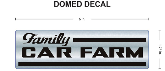 Domed auto stickers bring a unique, classy look to any new or pre-owned vehicle. - Size: up to 12 sq inches