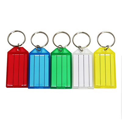 Unique design provides a simple yet effective method to protect key tag vehicle information. Transparent colored plastic helps you organize your vehicles and conveniently snaps open and shut to protect the replaceable paper insert from the elements. Each key tag is 1 inch tall x 2 1/4 inches long and is attached to a sturdy 1 inch diameter metal key ring. Sold 100 key tags per box. Available in Blue, Clear, Red, Yellow and Green
