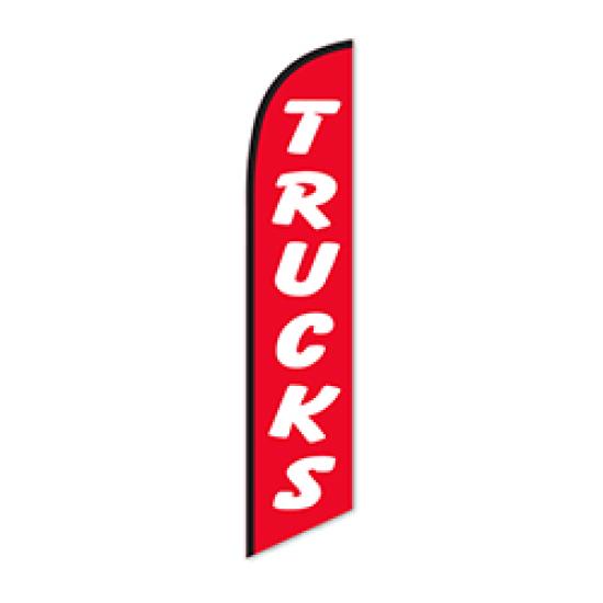 This feather flag, also called a feather banner, has a vibrant colored background with bold graphics and text.  Great for the front of your business or out by the road, this flag will flutter and flap with the slightest breeze