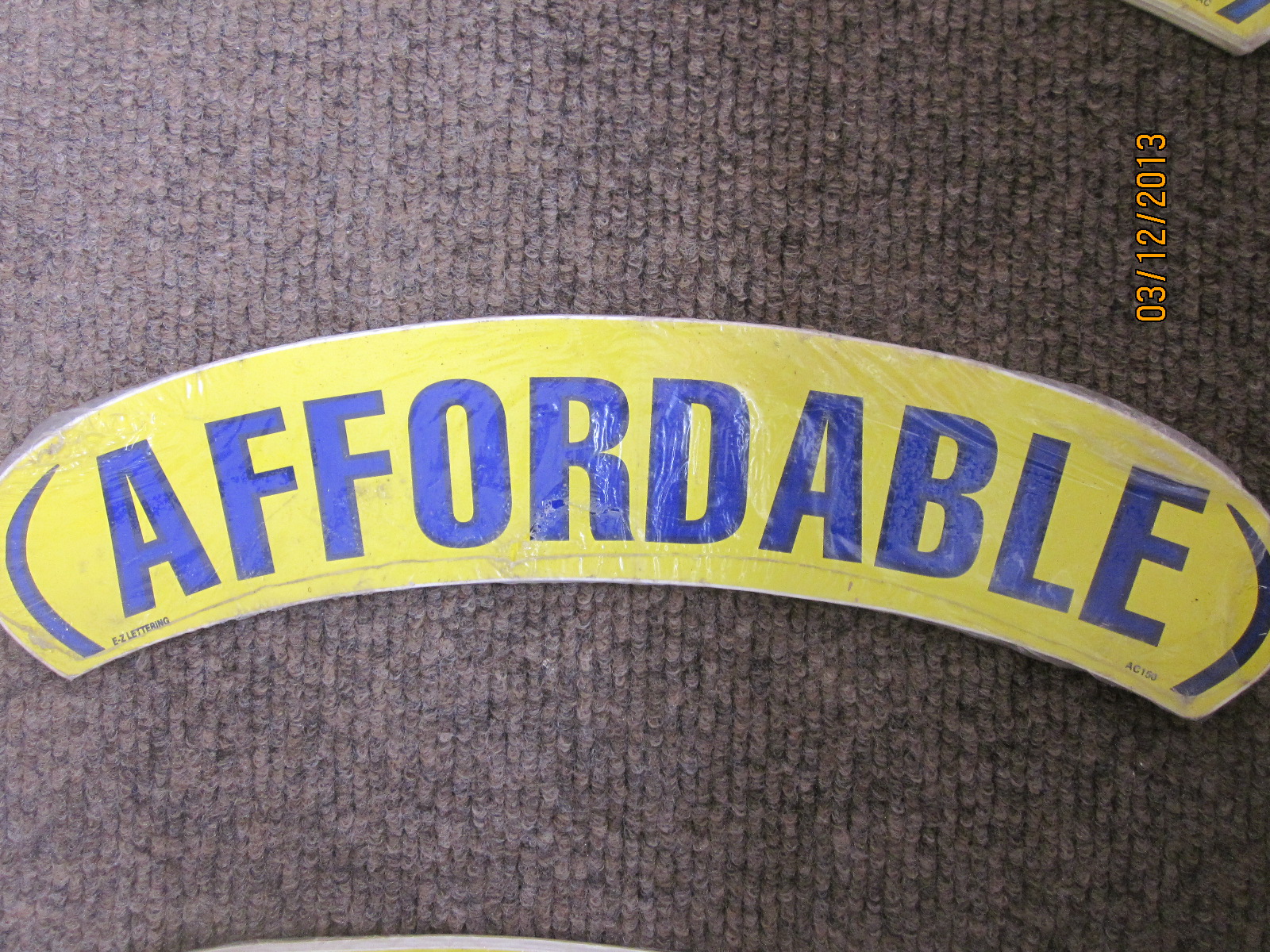 OUR LOSS IS YOUR GAIN! The items listed in the "2 dollar" section are NEW discounted items. They are either overstock, old stock, or special ordered items that a customer returned. Some of the packaging might be a little dirty and/or dusty, but All items are new and unused. Because these items are close-outs, they are available in limited supplies. Please dont order more than the available quantity listed BELOW. The Message on this item is: affordable