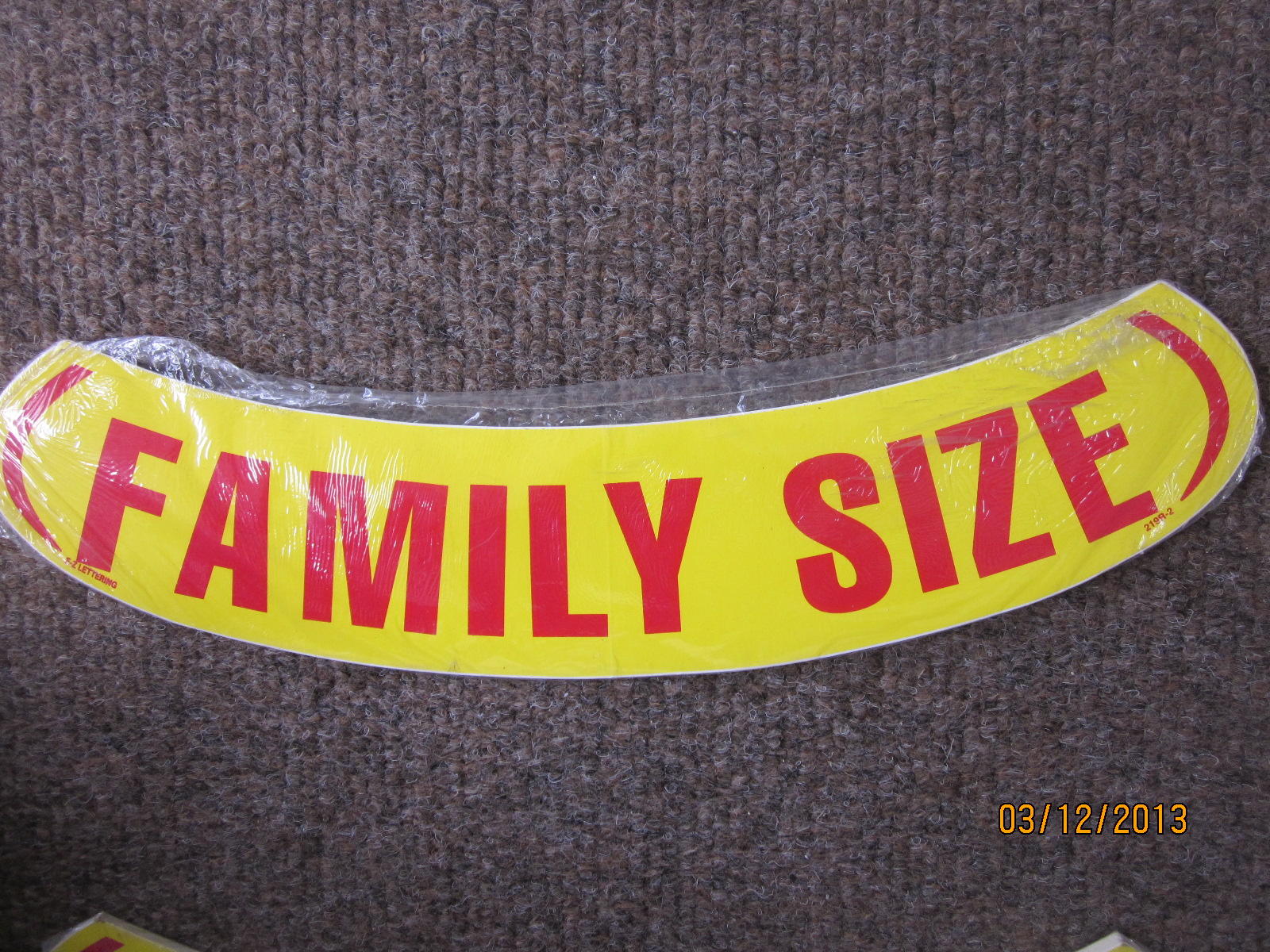 OUR LOSS IS YOUR GAIN! The items listed in the "2 dollar" section are NEW discounted items. They are either overstock, old stock, or special ordered items that a customer returned. Some of the packaging might be a little dirty and/or dusty, but All items are new and unused. Because these items are close-outs, they are available in limited supplies. Please dont order more than the available quantity listed BELOW. The Message on this item is: family size