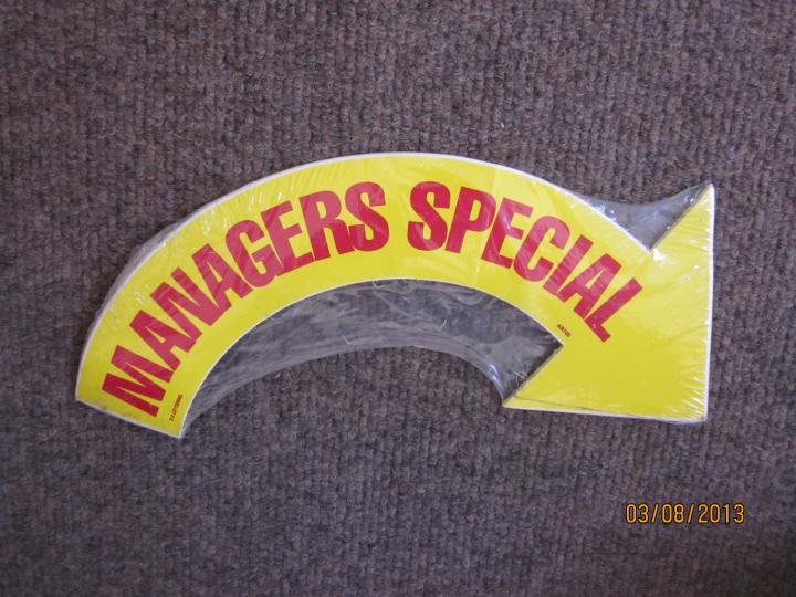 OUR LOSS IS YOUR GAIN! The items listed in the "2 dollar" section are NEW discounted items. They are either overstock, old stock, or special ordered items that a customer returned. Some of the packaging might be a little dirty and/or dusty, but All items are new and unused. Because these items are close-outs, they are available in limited supplies. Please dont order more than the available quantity listed BELOW. The Message on this item is: managers special